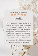 Mes massages sont caractérisés par des mouvements longs, harmonieux et fluides, respectueux et enveloppants, réalisés avec ou sans musique, selon vos préférences.